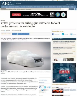 Resulta que ayer fue el llamado ‘April Fools Day‘, fecha de bufonadas y chistes en muchos países. Todos, empresas incluidas, bromean en comunicados, incluso en vídeos. En España no. Aquí nos creemos alguno y lo publicamos. Eso es lo que ha pasado con Volvo y su nuevo airbag, sueño de todo narcotraficante de la película de Juanma Bajo Ulloa. Este superairbag sale de un compartimento del techo y envuelve el coche completamente en caso de impacto. Ignacio Badomarme señaló en Twitter que una parte de la prensa se había tragado lo que a todas luces parecía un bulo: Público, El País, El Mundo, ABC , EFE y algunos más. El error de la Agencia -y de los demás- consistió en no haber tenido en cuenta el día que era, pues dieron por válido un comunicado de Volvo.